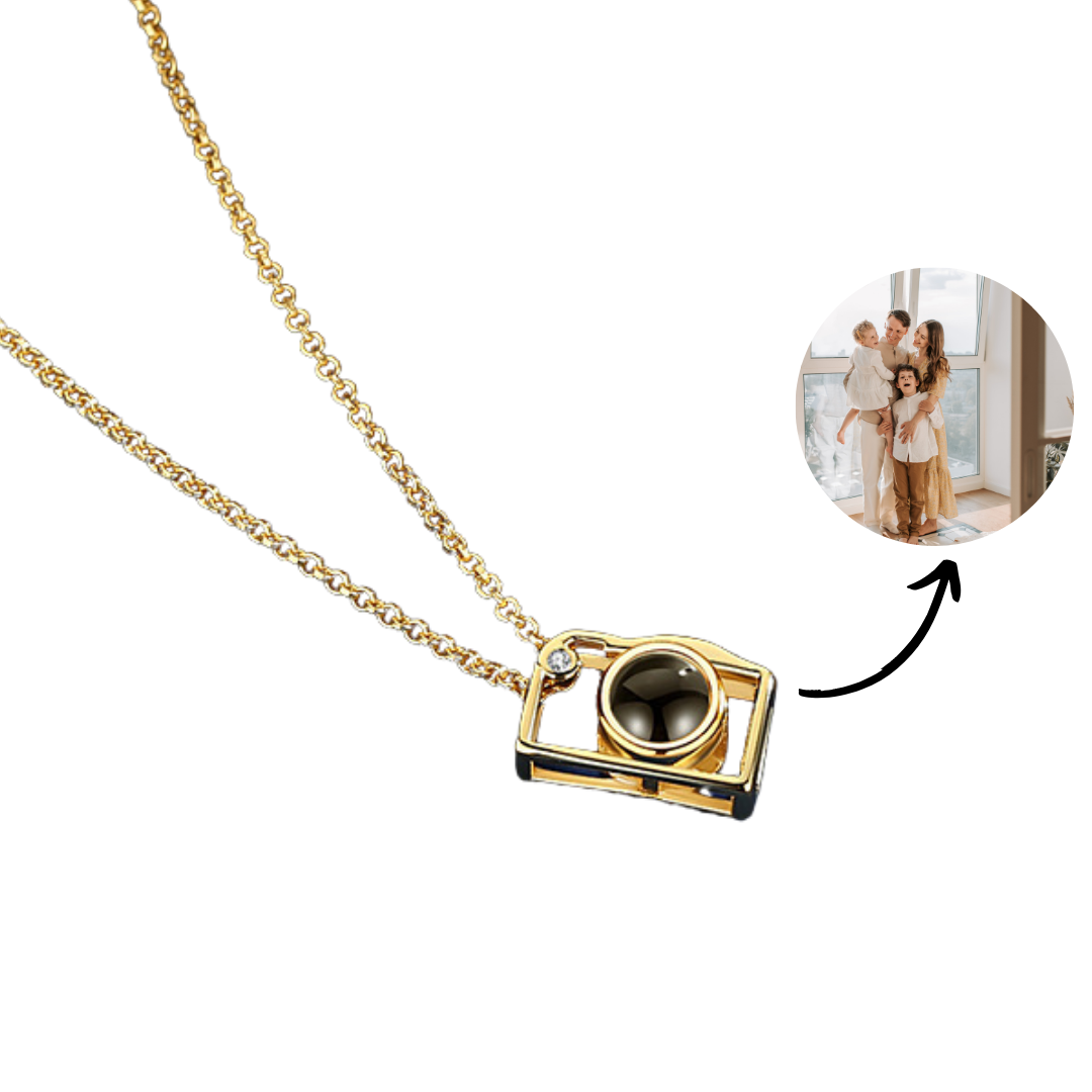 Diese einzigartige Halskette im eleganten Kamera-Design bewahrt deine schönsten Erinnerungen auf ganz besondere Weise. Im Inneren des Anhängers befindet sich dein persönliches Foto, das durch die integrierte Linse sichtbar wird – wie ein kleiner Moment, der für immer eingefangen ist.